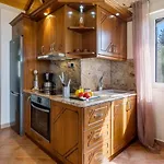 An electric kettle, a refrigerator, and kitchenware are also included in the kitchen at the Tsoukaladhes accommodation. Also, guests can use a dining area for self-catering.